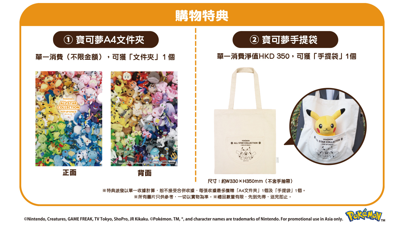 ② ポケモンノベルティトートバッグ:商品を350香港ドル以上ご購入で1個プレゼント!